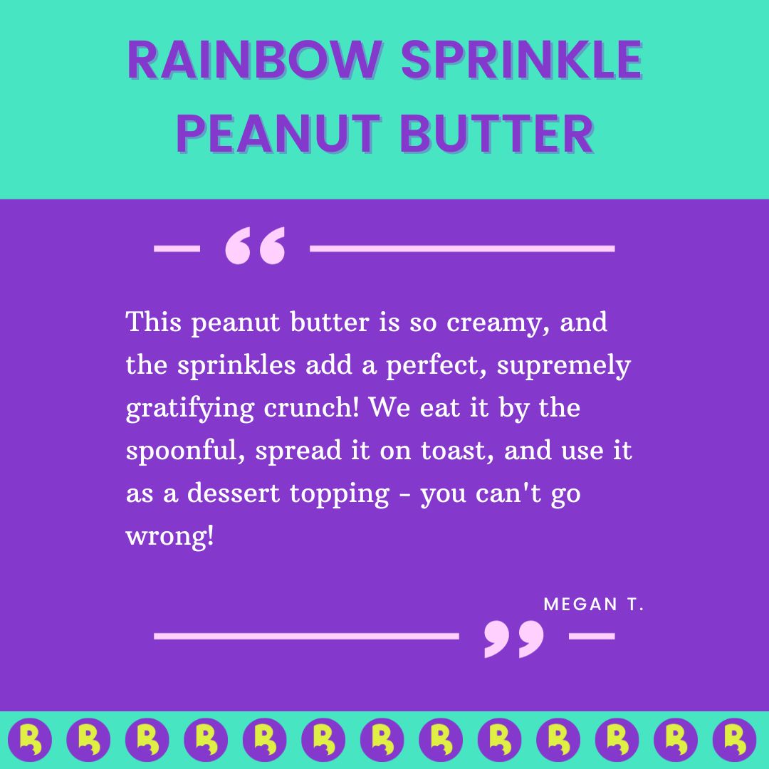 Get ready to unleash your inner child and dive headfirst into a world of whimsy and flavor explosion with our Rainbow Sprinkle Peanut Butter extravaganza! 🌈🥜🎉 Brace yourself for a kaleidoscope of joy, a maximalist masterpiece that's here to redefine your peanut butter experience in the most enchanting way imaginable.